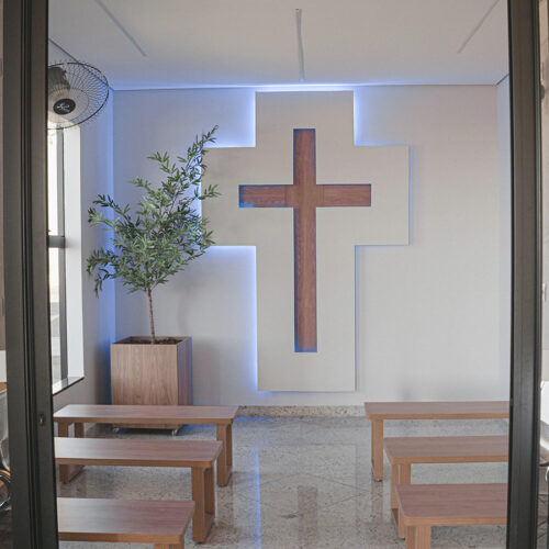 Um ambiente sereno e acolhedor, projetado para oferecer momentos de tranquilidade, reflexão e descanso. Cada detalhe foi pensado para promover bem-estar, conforto e equilíbrio, proporcionando um refúgio dentro do hospital.